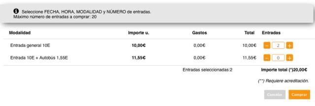 Ga naar “Seleccionar” naast de type entree die je wit (general of guiada) en druk op SELECCIONAR.